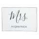 Um simples caso de travesseiro com "Sra." em um roteiro elegante junto com seu sobrenome em preto sobre um fundo branco. Este travesseiro moderno faz um casamento excelente / novo presente para uma noiva.