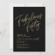 Convite de aniversário de 50 anos personalizado preto e dourado 'Fabuloso Cinquenta' com tipografia moderna e sofisticada. Personalize facilmente com nome, idade e detalhes da festa.