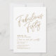 Convite de aniversário de 50 anos personalizado branco e dourado "Fabuloso Cinquenta" com tipografia moderna e sofisticada. Personalize facilmente com nome, idade e detalhes da festa.
