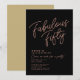 Simples convite de aniversário de 50 anos personalizado com "Fabuloso Cinquenta" em preto e dourado rosa com tipografia moderna e sofisticada. Personalize facilmente com nome, idade e detalhes da festa.