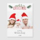 "Feliz Natal" em letra manuscrita e estilo caligrafia com folha holly verde de cor aquosa. Apresenta a sua própria foto de família. Fácil de personalizar e torná-lo seu.
