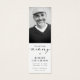 Crie um tributo duradouro com o nosso Elegante no Loving Memory Funeral Memorial Bookmarks Card. Estes marcadores são uma maneira séria de honrar a memória do seu amado. Com uma design personalizada, você pode incluir uma foto, seu nome e texto significativo que captura seu espírito. Estes marcadores servem como guardião que os participantes podem usar para marcar seu lugar em um livro, ao mesmo tempo que mantêm a memória de seu ente querido à mão. O elegante design adiciona um toque de sofisticação, fazer estes marcadores um belo item de recordação. Quer você escolha incluir um poema de lembrança de simpatia ou uma oração sincera, esses marcadores servirão como um lembrete do amor e das memórias compartilhadas. Personalize estes marcadores para criar um tributo significativo e personalizado para o seu ente querido.