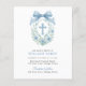 Um belo e acessível convite para batismo com arco azul, cruz e coroa floral. Perfeito para batismos de bebês, batizados ou cerimônias de nomes. Totalmente editável e fácil de personalizar com seus detalhes de evento. Um eterno a um preço barato.