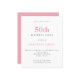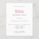 Texto Simples Do Orçamento Cor-De-Rosa 50º Convite De Aniversário. Um valor para o alternativo menor de 4,5 x 5,6 polegadas é usado como padrão para a opção de semigloscópio, que é recomendada para convites e é de espessura semelhante a um cartão postal. A opção satin é muito mais fina. A cor e o tipo da fonte podem ser alterados através do menu de edição. Você também pode alterar as cores do texto e do plano de fundo em ambos os lados, se desejar.
