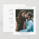 Simples Orçamento Foto Casamento Salvar a Data com tipografia mínima e foto na frente. O verso tem detalhes adicionais.