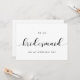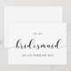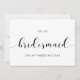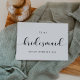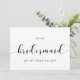 Um cartão de presente simples e minimalista para escrever uma mensagem pessoal e sincera para sua dama de honra no dia do seu casamento. Totalmente personalizável com suas cores favoritas (texto e fundo). Você pode adicionar uma mensagem no verso ou deixá-lo em branco se preferir escrever sua mensagem à mão posteriormente.
