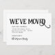 Um simples cartão de anúncio moderno em movimento em uma tipografia negra ousada para anunciar que você se mudou. Personalize com seu novo endereço, número de telefone e nome.