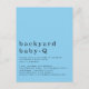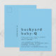 Simples quintal Bebê Q CHURRASCO Convite Azul num cartão postal conveniente. Muito espaço acima da tipografia para um toque contemporâneo. O cabeçalho da ocasião é grande em na moda com os detalhes na parte inferior. Personalize facilmente o texto para seus próprios detalhes. Clique em personalizar ainda mais para alterar as cores do fundo e da fonte, se desejar.