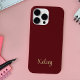 Maleta Simples, Vermelho Moderno e Monograma Dourada, iPhone 14 Pro Max Case. Esta capa de telefone está num creme moderno rico de vermelho com um elegante monograma de ouro.