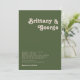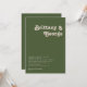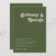 Este simples retrô vibe o convite de casamento verde-oliva é perfeito para o seu clássico casamento de tons de terra de safra. A design apresenta uma fonte hippie rustic boho minimalista. A paleta neutra a cores do sudoeste do deserto e as letras do século do médio boêmico da Terra combinam-se para uma design de destino ocidental minimamente moderna e perfeita. Sinta-se livre para mudar a cor adicionar seu próprio trabalho de arte, gráficos ou fotos. Se tiver alguma dúvida sobre a design deste produto, por favor sinta-se à vontade para nos contactar!