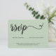 Apresentamos o Simple Sage Green RSVP Sem Envio - uma solução elegante e ecologicamente consciente para os convites do seu casamento. Este cartão de RSVP é uma combinação perfeita de elegância, funcionalidade e respeito ao meio ambiente, projetado para o casal moderno que valoriza tanto o estilo quanto a sustentabilidade.