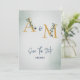 As folhas do eucalipto em torno dos monogramas do casal em combinação de tipografia serif clássica com monogramas elegantes quic. Esta design é excelente para um casamento rústico, outono, inverno, país ou ao ar livre. Fácil de personalizar com o seu texto. Personalize a parte de trás do convite com seus dados especiais.