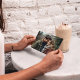 Espessura de 18 pt / Gramatura de 120 lb. Branco suave, textura delicada.