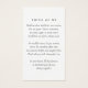 Este cartão poema memorial pode ser entregue como guardião numa Celebração da Vida ou num serviço funerário ou enviado como homenagem especial a quem não pôde estar presente. Este cartão pode ser personalizado com uma foto favorita e sua escolha de oração ou poema. A fotografia é para fins ilustrativos e pode ser alterada para uma de vocês.