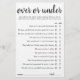 Simples chá de fraldas "Sobre ou Sob?" ou gênero revelam jogo de perguntas de festas com um roteiro divertido e casual, escrito à mão. O clássico design inclui uma moderna camada de tipografia de citações feitas à mão. Para outras cores ou produtos correspondentes, visite a loja justFharryn Zazzle ou entre em contato com o designer, c/o Fharryn@yahoo.com Todos os direitos reservados. #bohochic #zazzlemade