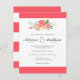 Simples Convocação de Casamento Floral e Stripes/Coral Brilhante 4.25 x 5.5. Observe que os sobrenomes têm espaço duplo.