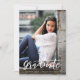 Um simples e moderno anúncio de graduação feito por Orabella Impressão, com tipografia de na moda e design divertida no verso. O plano de fundo na parte traseira da placa pode ser personalizado para qualquer cor que você quiser.