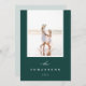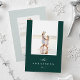 Cartão com fotos de feriado simples e elegante permite que sua foto favorita da família tire o palco central. As cores de feriado do design de eterno em chic apresentam um rico fundo verde de corrida com sua foto esboçada em branco, seu nome de família e o ano no final em branco nítido. Adicione três fotos adicionais ao verso, juntamente com um cartões de natal pessoal sobre um fundo verde pastel em contraste. Uma bela escolha minimalista que fará com que suas mensagens de feriado saiam do grupo.