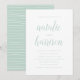 Convide os entes queridos para comparecer ao seu dia especial com os nossos convites para casamento Simplicity. Os convites de casamento minimalistas combinam caligrafia elegante com um esquema de cor verde e branco da menta. Personalize os convites de casamento com seus detalhes de casamento.