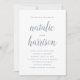 Convide os entes queridos para comparecer ao seu dia especial com os nossos convites para casamento Simplicity. Os convites de casamento minimalistas combinam caligrafia elegante com um esquema de cores azul e branco de ardósia. Personalize os convites de casamento com seus detalhes de casamento.