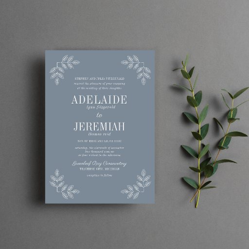 Este convite de casamento simples e elegante apresenta uma moldura de folhas desenhadas que bordeia o texto do convite. Por favor, entre em contato comigo se desejar ajuda para personalizar a parte do texto.
