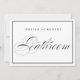 Símbolo clássico de casamento preto-e-branco subdeclarado com um toque moderno que apresenta a elegante escrita da palavra "Banheiro" e uma fronteira negra. Quadro para sua cerimônia de casamento ou área de recepção.