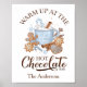 Bar de chocolate quente de Natal Poster com caneca de chocolate quente e biscoitos de gengibre em azul, castanho e bege. Design de Natal elegante e fofo. Personalize facilmente o nome. - Kate Eden Art