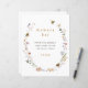 Celebrar a futura mãe com este lindo cartaz de bar momosa chá de fraldas floral apresentando uma moldura de flor silvestre a aquarela com pequenas flores silvestres e abelhas.
