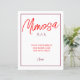 Um brinde à amizade e ao amor no nosso Bar Vermelho e Maroon Mimosa. Esta placa vibrante e convidativa define a cena para momentos memoráveis sobre mimosas deliciosas.
