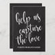 Uma elegante placa de casamento de ponta, apresenta o texto "Ajude-nos a capturar o amor" em uma fonte extrovertida, a textura do pincel adiciona um sentimento espontâneo e brincalhão. A cor de fundo pode ser personalizada de acordo com as suas necessidades e preferências, contacte-me se tiver alguma solicitação especial.