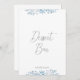 Sinal de casamento elegante e boho para a sua barra de sobremesas apresenta folhas de eucalipto azul empoeiradas, uma fonte de letra script romântica e uma fonte sans serif moderna.