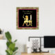 Crie um toque de glamour com este elegante cabelo impressão de Chita preto e Ouro 24x24 polegadas e poster de letreiro de beleza com uma silhueta dourada de uma mulher de cabelo comprido e ondulado. Quem resiste a um par de calçados rosas modernos com arcos? Ela está admirando seu reflexo num espelho de vaidade. Personalize este design de impressão chic de animais adicionando o nome do seu cabelo e salão de beleza e um belicista certificado ou um estilista de cabelos. Imagem plana, NÃO metálica refletora.