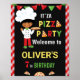 Pizza, sinal de boas-vindas, festa de cozinhar Pizza. Esta placa de boas-vindas da Pizza é perfeita para dar as boas-vindas aos seus hóspedes na festa da Pizza fazer ou na festa italiana! Uma festa bonita para a festa de aniversário de um jovem chef com um chef de cozinha de pele escura e alguns equipamentos de cozinhar. Basta editar este modelo fácil de usar no menu Personalização para torná-lo especial.