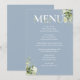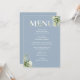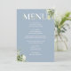 Com letras verdes bonitas num fundo azul empoeirado, este cartão de menu ou sinal elegante é perfeito para todas as ocasiões. Desenhado por Thisisnotme©