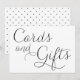 Lindos cartões e presentes com sinal de letra caligráfica preta dainty e padrão de bolinhas. Este cartão plano será perfeito para casamentos e eventos semelhantes. Disponível em outras cores.