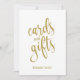 Um sinal de casamento elegante e moderno, apresenta o texto "Cartões e Presentes" em uma fonte de letra extrovertida, a textura brilhante adiciona um toque festivo e glamoroso. A cor do fundo pode ser personalizada de acordo com as suas necessidades e preferências, por favor entre em contato comigo se tiver algum pedido especial.