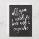 Uma elegante placa de casamento de ponta, mostra o texto "Tudo que você precisa é amor e um cupcake" em uma letra extrovertida, a textura do pincel adiciona um sentimento espontâneo e brincalhão. A cor de fundo pode ser personalizada de acordo com as suas necessidades e preferências, contacte-me se tiver alguma solicitação especial.