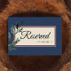 Este sinal reservado para o Casamento no inverno Pine Blue combina uma fronteira azul elegante e empoeirada com elegantes, pinheiros verdes para um olhar clássico, mas rústico. A folhagem botânica verde com tipo caligrafia sobre fundo bege cria uma víbora focada na natureza para a celebração do casamento de Natal ou de destino florestal.