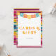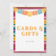 Guie seus hóspedes com estilo usando este cartaz mexicano "Cards & Gifts" do tema Fiesta! Com uma faixa vibrante de papel picado e um fundo colorido listrado, este cartaz adiciona um toque festivo ao seu chá de fraldas enquanto direciona os convidados para a mesa de presente. Parte da nossa coleção de chás de fraldas Fiesta mexicana, é uma adição encantadora e prática à sua decoração.