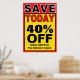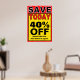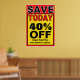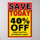 (diferentes tamanhos disponíveis). sinal em negrito para mostrar sua economia hoje. Use este modelo para qualquer quantia de desconto ou qualquer tipo de venda. Não faça cartazes de loja com o Magic Marker. Eles parecem baratos. Isso parece profissional.