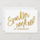 Anuncie o seu faísca de casamento... com este moderno sinal de caligrafia. IMPORTANTE: A aparência mostrada é um efeito impresso. Não é folha de papel real. Se você não quiser esse efeito, poderá excluí-lo assim: 1) Clique em "Personalizar mais. 2) Localize a imagem que diz folha z-gold e elimine-a.