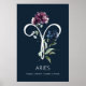Design floral moderno do símbolo Aries Zodiac, que representa um corno curvo de Ram.