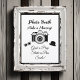 Sinal de foto da câmara branca e preta. Faça uma memória, pegue um adereço e faça uma pose! Sinal de casamento.