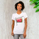 Esta design é de uma placa de casa aberta. Do tipo que teria se vendesse sua casa. O sinal de casa aberta é vermelho com escrevendo branco e é anexado a um posto. Esta design de placa de casa aberta parece excelente nesta t-shirt feminina. Perfeito para si mesmo ou como presente