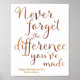 Nunca esqueça a diferença que fez! Um belo sinal de ouro escuro perfeito para a sua festa de aposentadoria ou como uma aposentadoria dá a alguém que prestou serviço de excelente. Personalize com sua própria mensagem.