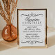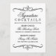 Exiba seu cardápio de bebidas personalizado com estilo com este sinal de "Cocktails de Assinatura" inspirado no vintage, apresentando divisores ornamentais elegantes. O layout de Escolha da Noiva e Escolha do Noivo destaca dois cocktails personalizados com nomes e ingredientes em tipografia preta e branca refinada. Um acento atemporal para qualquer bar de casamento ou hora do coquetel. Todo o texto é totalmente personalizável.