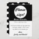 Sinalizador de convidado de casamento preto e branco, totalmente personalizável, com um design de padrão bolinhas na parte de trás. Personalize-o com os nomes da noiva e da madrinha e adicione suas mensagens especiais aos convidados. A cor deste convite é perfeitamente personalizável para combiná-lo com o seu próprio tema de cor de casamento. Para alterar a cor preta, basta clicar no botão "Personalizar!" e escolher qualquer cor que você quiser na paleta "Cor de fundo impressa". Papel de carta de casamento personalizável e acessórios estão disponíveis na loja de papéis de carta de Casamento Forever In Love.