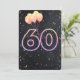 Sinal de neon brilhante e confete sobre fundo preto com buquê de balão para o 60º convite de festa de aniversário.