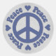 Paz - adesivo de cinza leve com riscas azuis desbotadas, sinal de paz e corações.