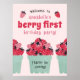 Bem-vindos aos seus convidados para o seu primeiro aniversário com este poster! Faça o download e o impressão no seu centro de cópia local impressos ou instantâneos. Coloque no seu quadro favorito. Este doce design de morango apresenta um cesto de morangos a cores aquáticas recentemente colhidos. Veja a coleção inteira para mais itens correspondentes!
